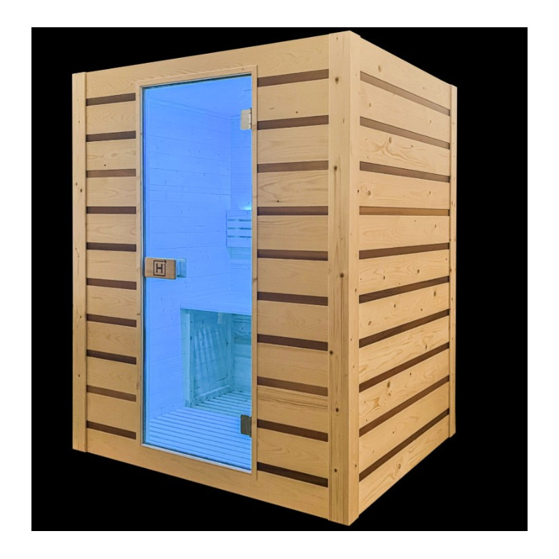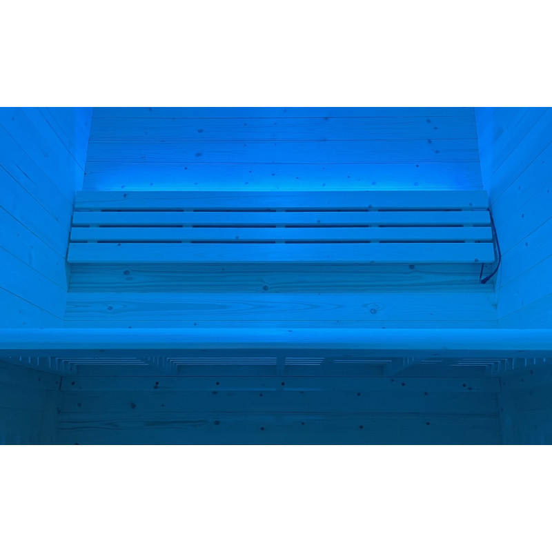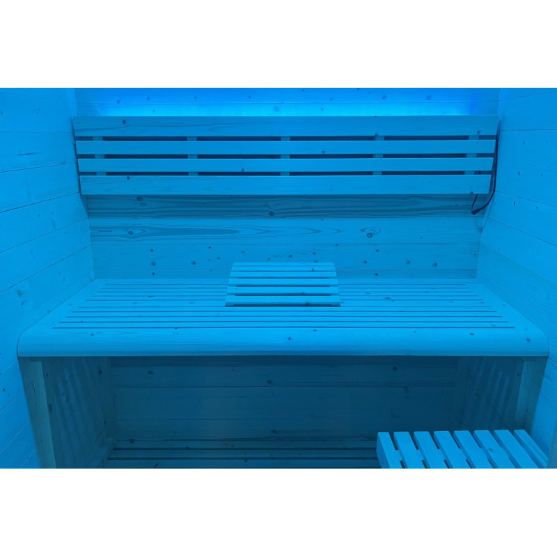 Tous les paramètres ont été étudiés pour que ce sauna préserve l’énergie. Ses parois sont mieux isolées, l’espace sous les bancs est fermé permettant ainsi une isolation optimale.