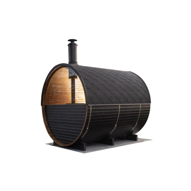 Un sauna Barrel extérieur en ThermoWood, spacieux et élégant