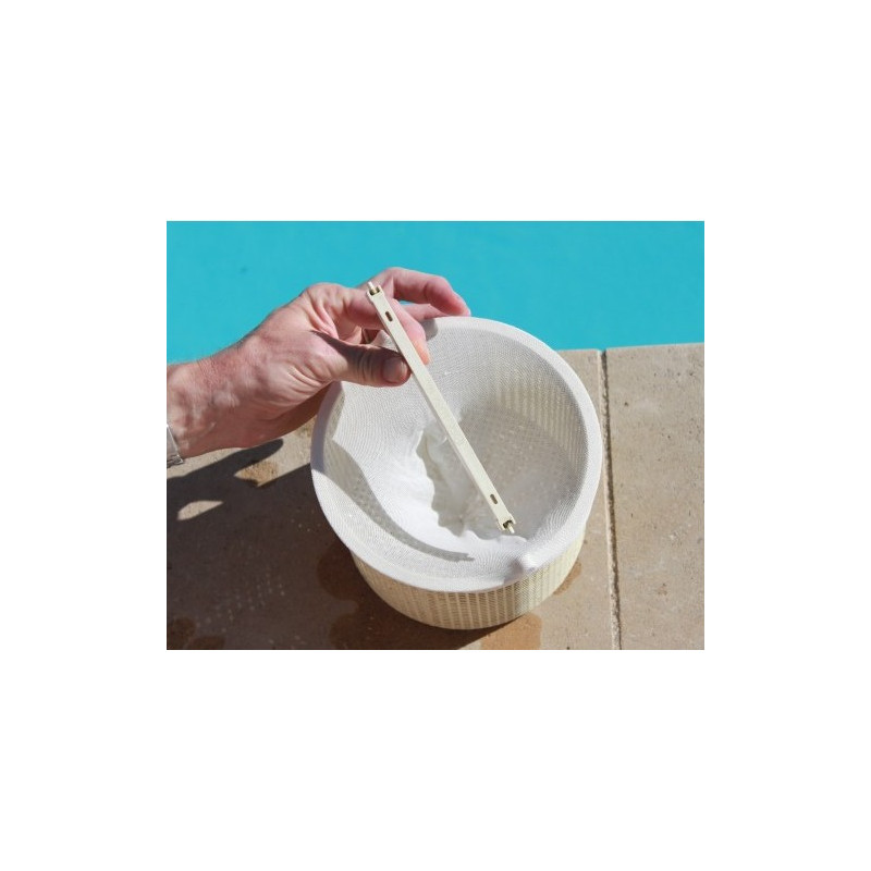 Net’Skim® est un préfiltre qui s’adapte à tous les paniers de skimmers, avec ou sans poignée, jusqu’au diamètre 24 cm. En retenant les détritus et saletés (feuilles,épines, pollens,moustiques) accumulés à la surface du l’eau du bassin, il facilite et simplifie le nettoyage fastidieux du panier et protège la pompe. Son système breveté de double fixation : attache et élastique, son maillage spécifique en 250-300 microns garantissent un résultat optimal.