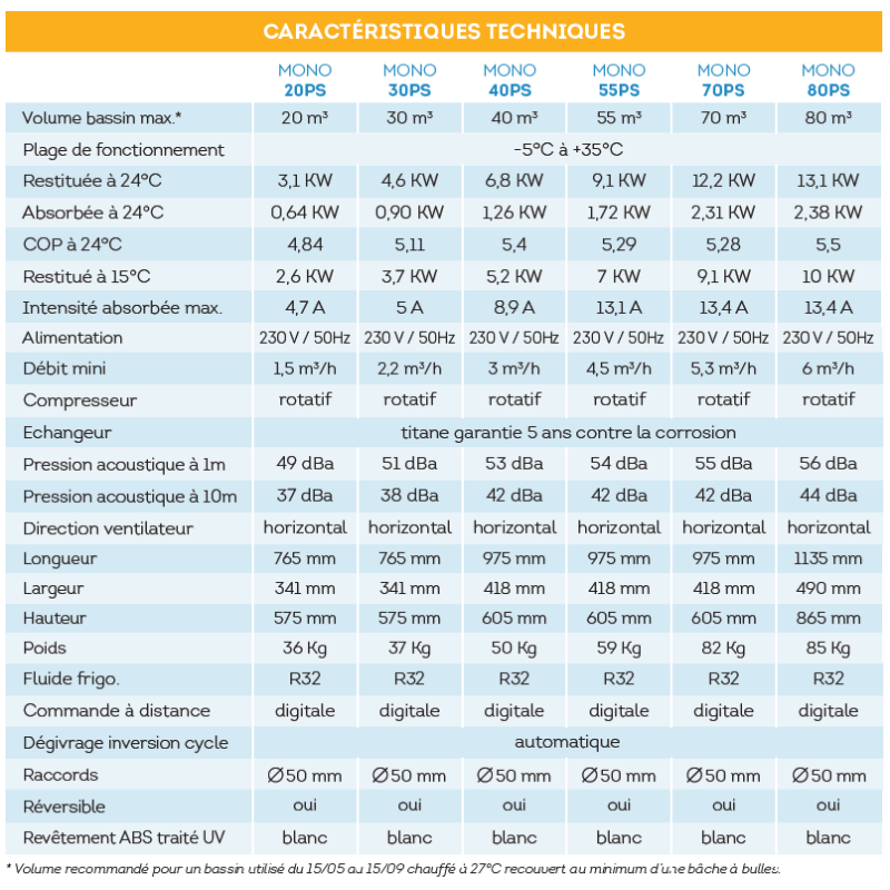 - Échangeur : titane garanti 5 ans contre la corrosion